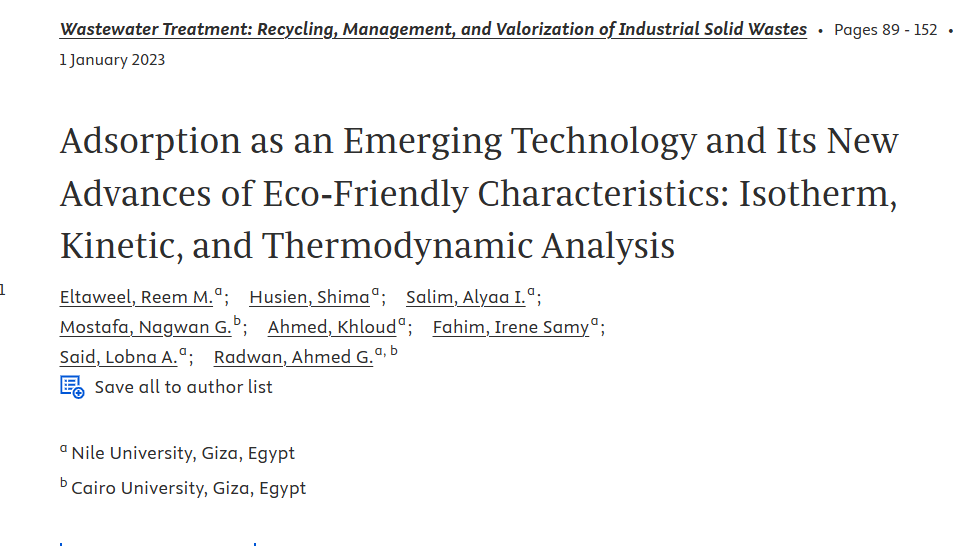 Adsorption as an Emerging Technology and Its New Advances of Eco-Friendly Characteristics: Isotherm, Kinetic, and Thermodynamic Analysis