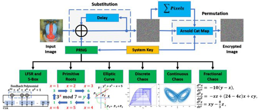 The design of an efficient Pseudo Random Number Generator (PRNG) with good randomness properties is an important research topic because it is a core component in many applications. Based on an extensive study of most PRNGs in the past few decades, this paper categorizes six distinct design scenarios under two primary groups: non-chaotic and chaotic generators. The non-chaotic group comprises Linear Feedback Shift Registers (LFSR) with S-Boxes, primitive roots, and elliptic curves, whereas the chaotic group encompasses discrete, continuous, and fractional-order chaotic generators. This paper delves into the related scientific summaries, equations, flowcharts, and designs with necessary recommendations for each PRNG scenario. Even though the focus is on the basic design characteristics that provide simple, functional and secure PRNGs, it is possible to enhance those designs for additional features and improved efficiency. Simulation outcomes and system key configurations, which produce long random sequences, are also presented and evaluated using leading criteria. The evaluation criteria include the National Institute of Standards and Technology (NIST) SP-800-22 test suite, TestU01 randomness tests, histogram, entropy, autocorrelation, and cross-correlation. Furthermore, key space, key sensitivity, and bit rate indicate that all designed examples meet international standards with high quality. The presented PRNGs are compared and integrated into an image encryption system. Although each PRNG design scenario can have a different key space, simple designs with fixed-length system keys are chosen for the sake of proper comparisons. Statistical and security assessments of the encryption system demonstrate that the PRNGs are cryptographically secure. © 2013 IEEE.