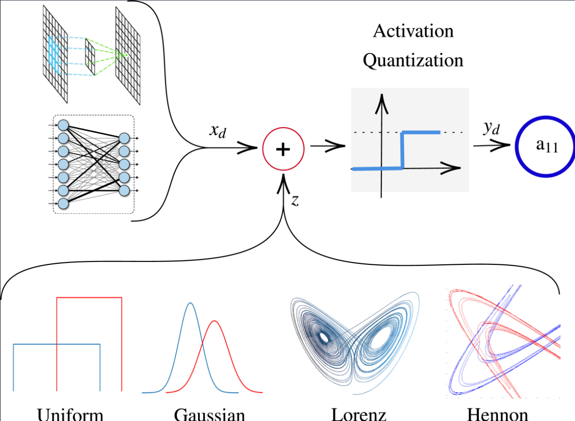 Chaotic neural network quantization and its robustness against adversarial attacks