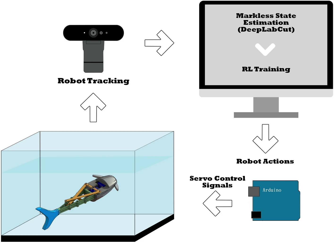 Soft robots provide a pathway to accurately mimic biological creatures and be integrated into their environment with minimal invasion or disruption to their ecosystem. These robots made from soft deforming materials possess structural properties and behaviors similar to the bodies and organs of living creatures. However, they are difficult to develop in terms of integrated actuation and sensing, accurate modeling, and precise control. This article presents a soft-rigid hybrid robotic fish inspired by the Pangasius fish. The robot employs a flexible fin ray tail structure driven by a servo motor, to act as the soft body of the robot and provide the undulatory motion to the caudal fin of the fish. To address the modeling and control challenges, reinforcement learning (RL) is proposed as a model-free control strategy for the robot fish to swim and reach a specified target goal. By training and investigating the RL through experiments on real hardware, we illustrate the capability of the fish to learn and achieve the required task. © 2022, The Author(s).