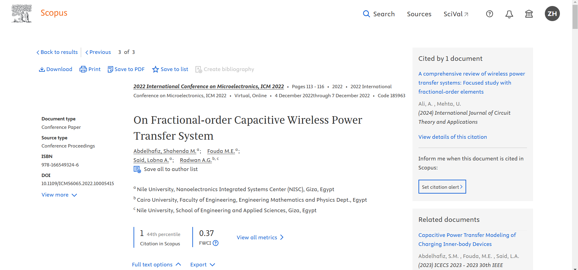 Wireless power transfer is becoming an increasingly viable solution for the electrical powering of various electronic gadgets. However, precise outputs are not guaranteed with integer systems, so fractional-order capacitors are vital. This paper studies a four-plate fractional capacitive power transfer system by varying six orders of capacitors between the plates along with the load resistance. A mathematical model based on a 4× 4 mutual fractional capacitance matrix is established for equidistantly placed four identical metal plates. Moreover, the chosen circuit topology is identified and analyzed based on the proposed model. © 2022 IEEE.