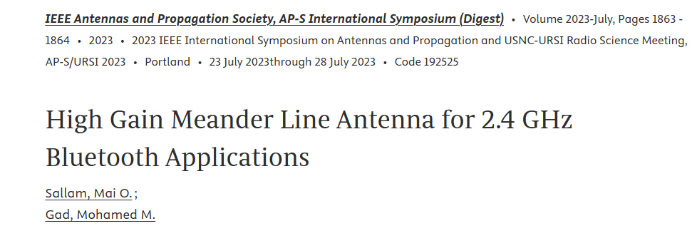In this paper, a highly directive meander line antenna is proposed to be utilized in the unlicensed Bluetooth band. The main goal of the proposed structure is to achieve low profile, and high gain in the Bluetooth band. Moreover, the antenna should be of low cost to be suitable for commercial use. The proposed structure is simulated using HFSS and CST to verify the obtained results. The maximum calculated gain of the antenna is 9.95 dBi (9.79 dBi) along the end-fire direction as simulated by HFSS (CST). The antenna demonstrated high radiation efficiency which is around 96% over its working bandwidth ranging from 2.395 GHz - 2.5 GHz (2.4 GHz - 2.48 GHz), according to HFSS (CST). The antenna also demonstrated its high polarization purity with maximum cross polarization level of -24 dB. © 2023 IEEE.
