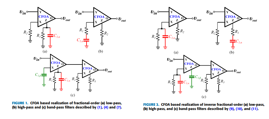 Non-integer order filters can be derived from a generalized structure presented in this work. More specifically, fractional-order and power-law filters of single- or double-order are special cases of non-integer order filters with three degrees of freedom and can be implemented using a Current Feedback Operational Amplifier as the active element. The transfer function is formed as a ratio of two impedances which can be synthesized using Foster or Cauer RC networks. A curve-fitting based technique is employed for approximating the magnitude and phase of each impedance. The behavior of the presented structures is evaluated through simulation results, using the OrCAD design suite and, also, through experimental results. © 2013 IEEE.