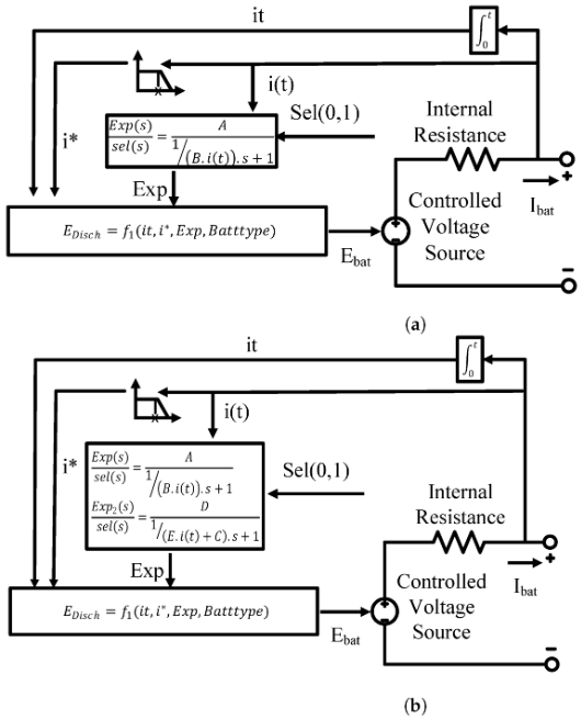 Lithium-ion batteries are crucial building stones in many applications. Therefore, modeling their behavior has become necessary in numerous fields, including heavyweight ones such as electric vehicles and plug-in hybrid electric vehicles, as well as lightweight ones like sensors and actuators. Generic models are in great demand for modeling the current change over time in real-time applications. This paper proposes seven dynamic models to simulate the behavior of lithium-ion batteries discharging. This was achieved using NASA room temperature random walk discharging datasets. The efficacy of these models in fitting different time-domain responses was tested through parameter identification with the Marine Predator Algorithm (MPA). In addition, each model’s term’s impact was analyzed to understand its effect on the fitted curve. The proposed models show an average absolute normalized error as low as (Formula presented.). © 2023 by the authors.