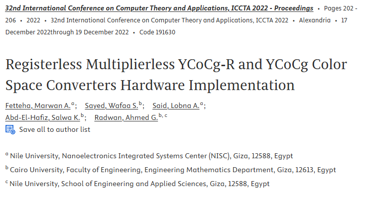 Multimedia data, e.g., images and videos, are widely used over the internet and on computers. Image processing applications require color space conversion to be able to deal with these types of data more efficiently. This paper investigates three color space conversions and proposes simplified combinational hardware designs and FPGA realizations for RGB to YCoCg-R and YCoCg color spaces encoders and decoders and compares them to their sequential counterparts. The proposed hardware design for the encoders and decoders uses only adders and subtractors without any registers or multipliers. The proposed YCoCg-R converter exhibits better resources utilization compared to implementing the design using shift registers, where it uses 56.3% and 72.1% less LUTs and FFs, respectively. Similarly for the YCoCg color space, the combinational design used 48.1% less LUTs and 67.8% less FFs than its sequential counterpart. © 2022 IEEE.