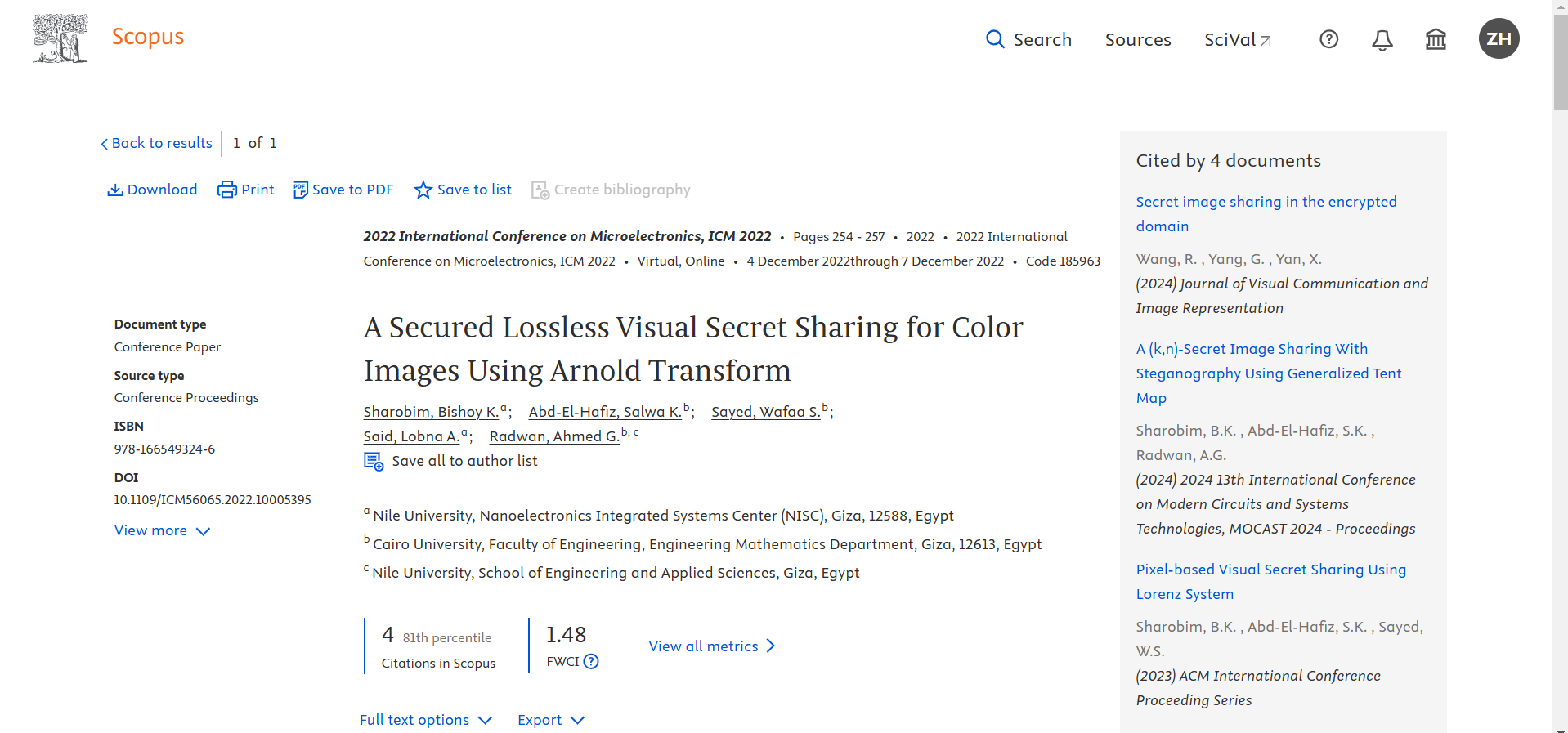 Nowadays, with the rapid growth in information, a fast and secure method is eagerly needed to share images. (n, n)-Visual Secret Sharing (VSS) is used to share a secret image into n shares, where the secret can only be recovered using all the n shares and the recovery must be fast with low computational complexity. This paper proposes a secured lossless (n, n)-VSS system based on Arnold transform and pixel vectorization suitable to be used with binary, grayscale and color images. Multiple security tests were performed such as entropy, correlation, Mean Squared Error (MSE), National Institute of Standards and Technology (NIST) SP-800-22 statistical suite, and differential attacks, which demonstrate the good security of the proposed system. In addition, the time complexity and runtime of the recovery system indicate good efficiency. © 2022 IEEE.