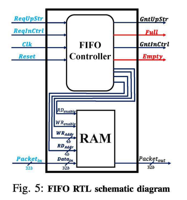 Area and power consumption are the main challenges in Network on Chip (NoC). Indeed, First Input First Output (FIFO) memory is the key element in NoC. Increasing the FIFO depth, produces an increas in the performance of NoC but at the cost of area and power consumption. This paper proposes a new hybrid CMOS-Memristor based FIFO architecture that consumes low power and has a small size compared to the conventional CMOS-based FIFOs. The predicted area is approximately equal to the half of that wasted in conventional FIFOs. The implementation of FIFO controller module is implemented using HDL. Moreover, the functionality test and the simulation results of the proposed architecture are presented. Simulation is done using ISF Xilinix and Cadence tools. © 2018 IEEE.